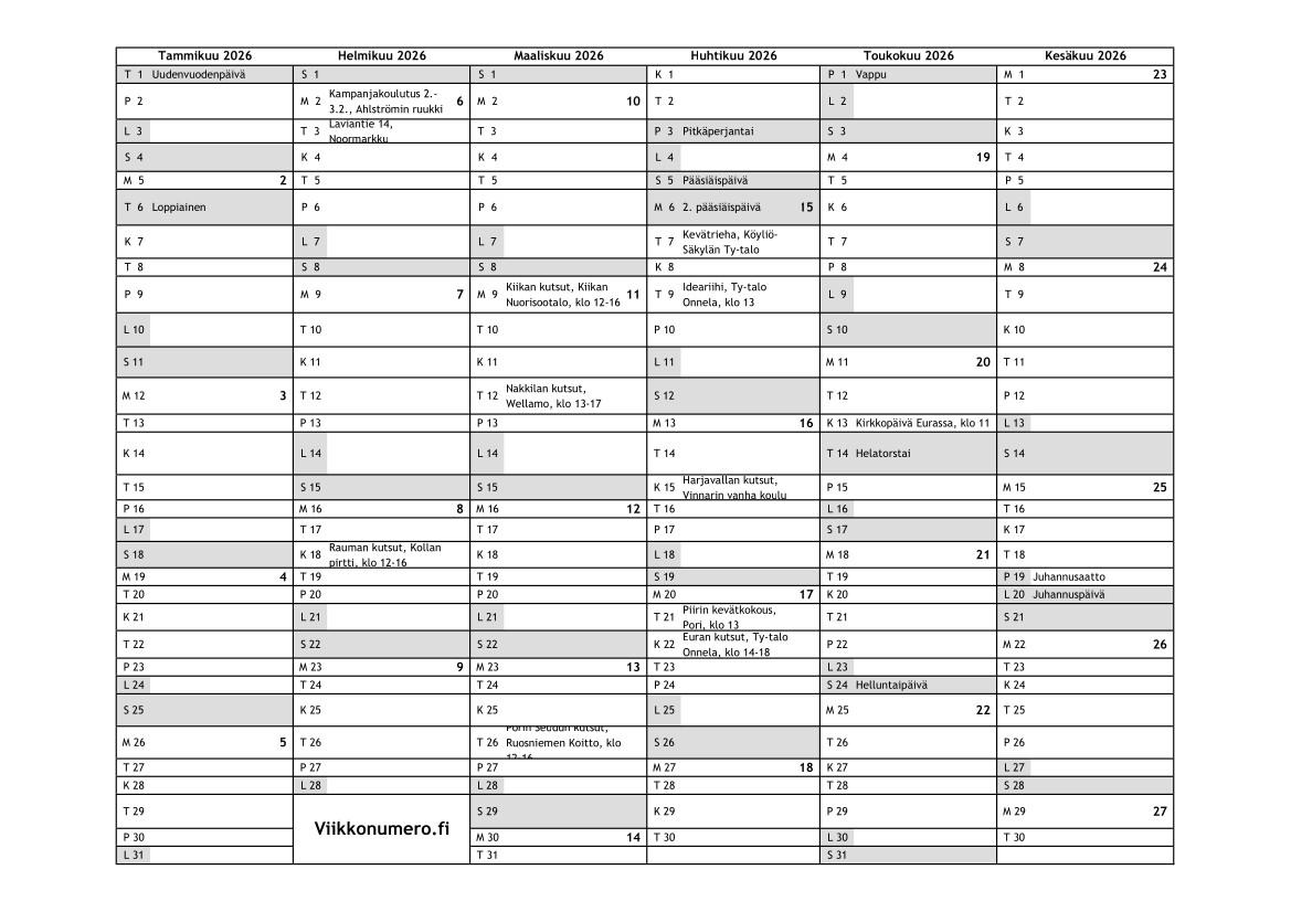 EKL:n Satakunnanpiirin tapahtumakalenteri