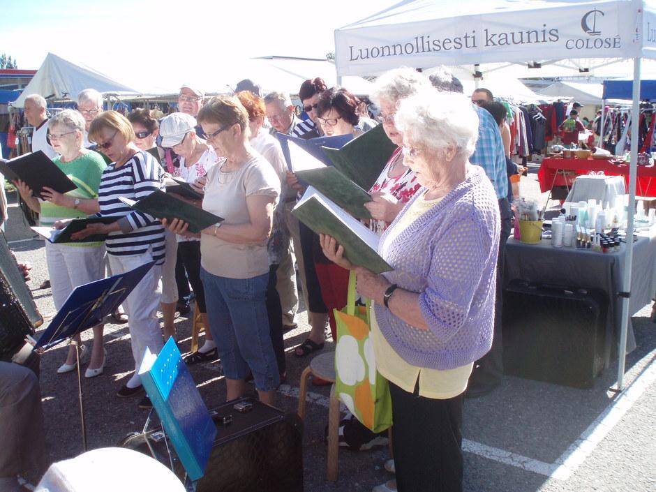 Eläkkeensaajat Säkylän torilla 2.7-15