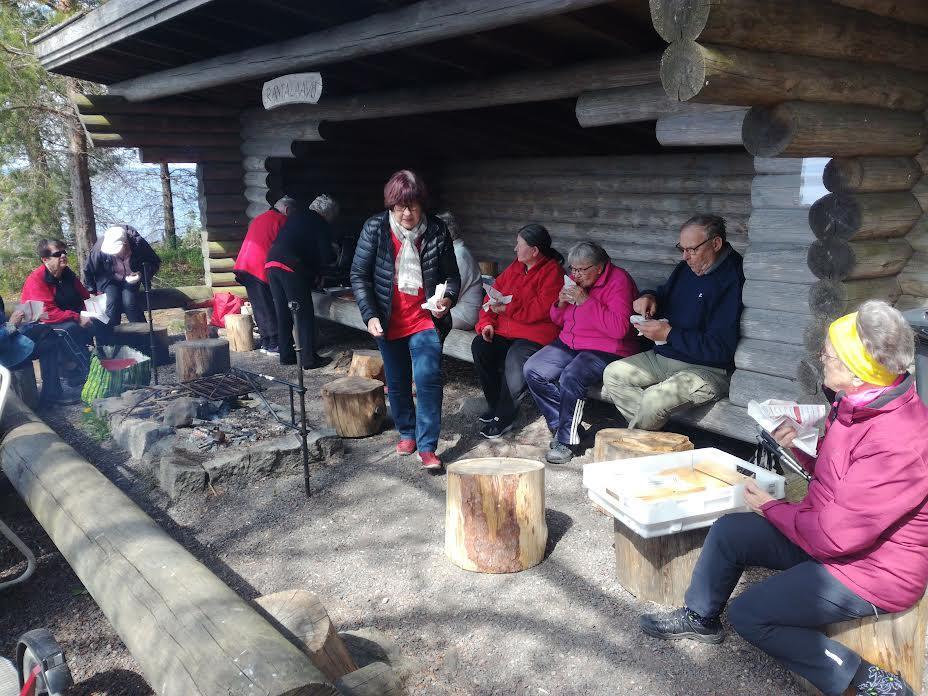 Laavulla vietettiin talvikauden päättäjäisiä makkaran, kahvin ja keskustelujen merkeissä. Ilmassa oli kesän merkkejä tyyni ja lämmin sää, on sitä hyvä kesää odotella.
